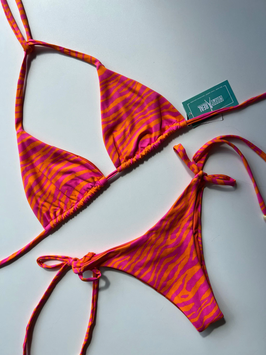 Biquíni em poliamida premium light. Composto por parte de cima modelo cortininha com entrada para bojo e calcinha modelo amarração lateral. Possui forro interno e alças achatadas para o bronze perfeito.