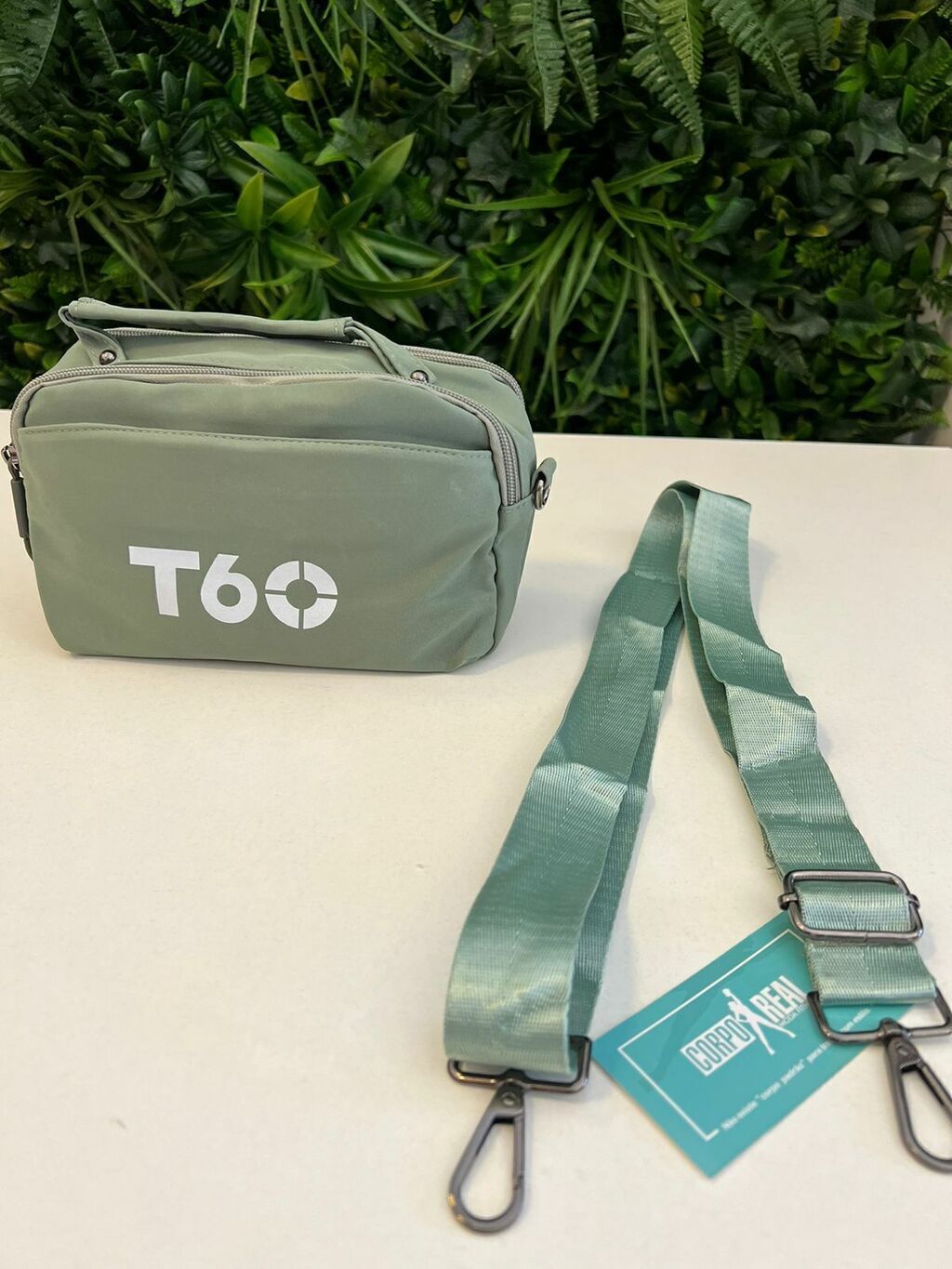 Bolsa pequena com 3 repartições externas (fechamento zíper). Possui alça regulável e interno todo forrado.