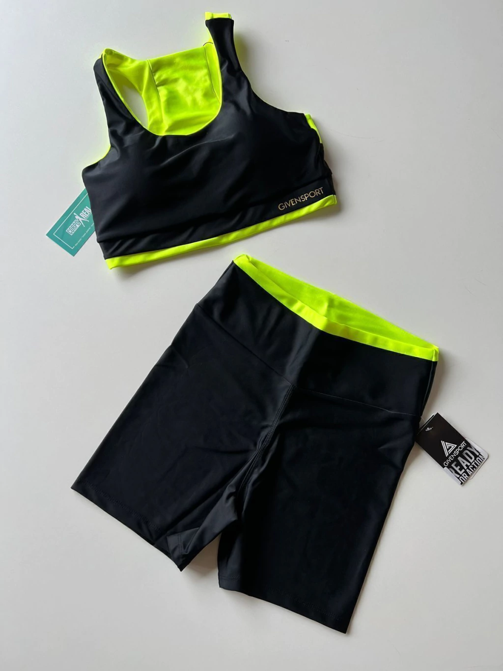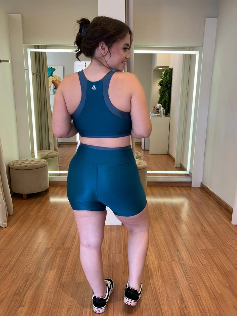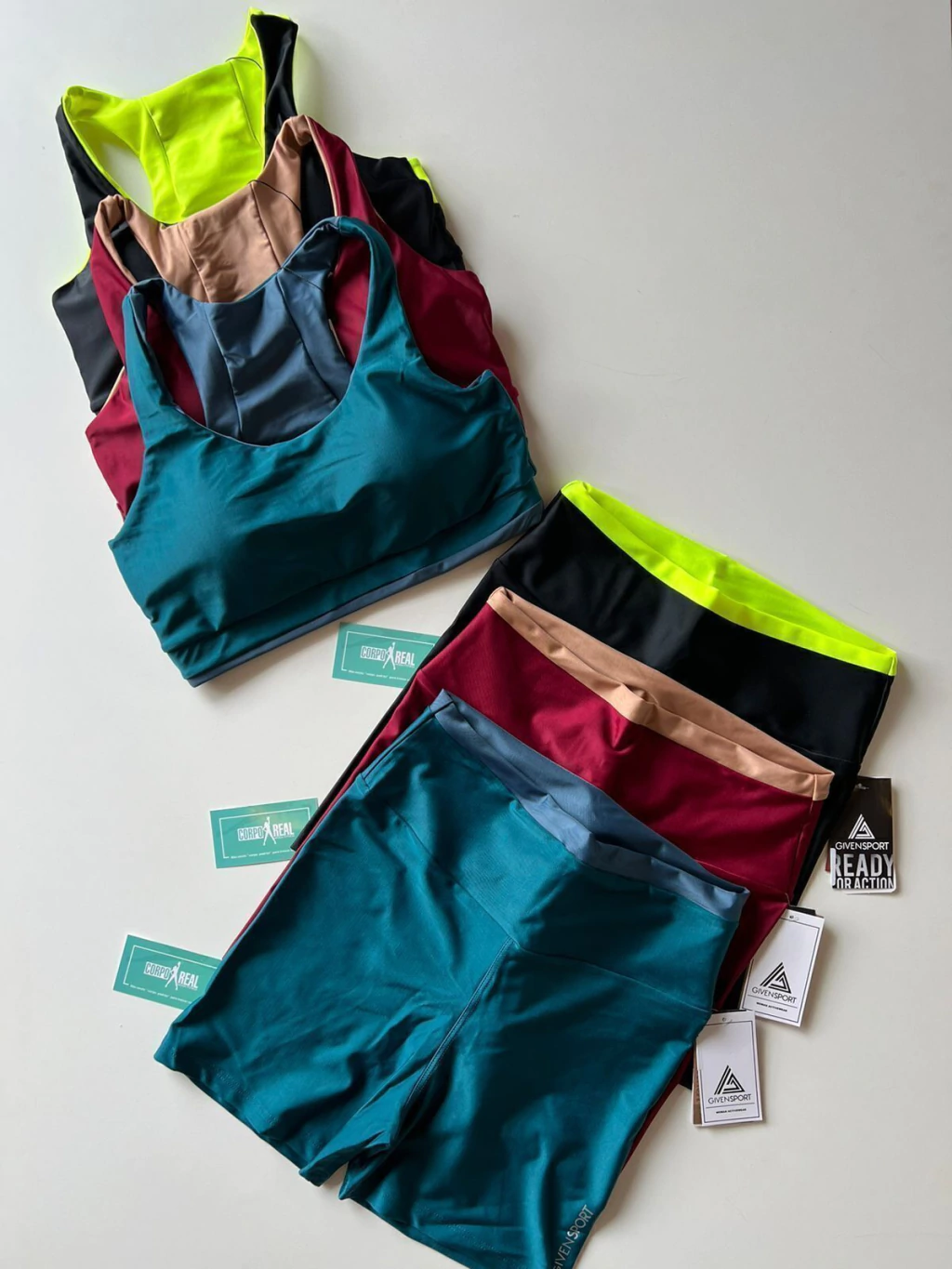 Conjunto Given alta qualidade. Possui top com sustentação, alças largas, forro interno e bojo removível. Short cós alto, zero transparência. Acabamento acetinado, gloss.