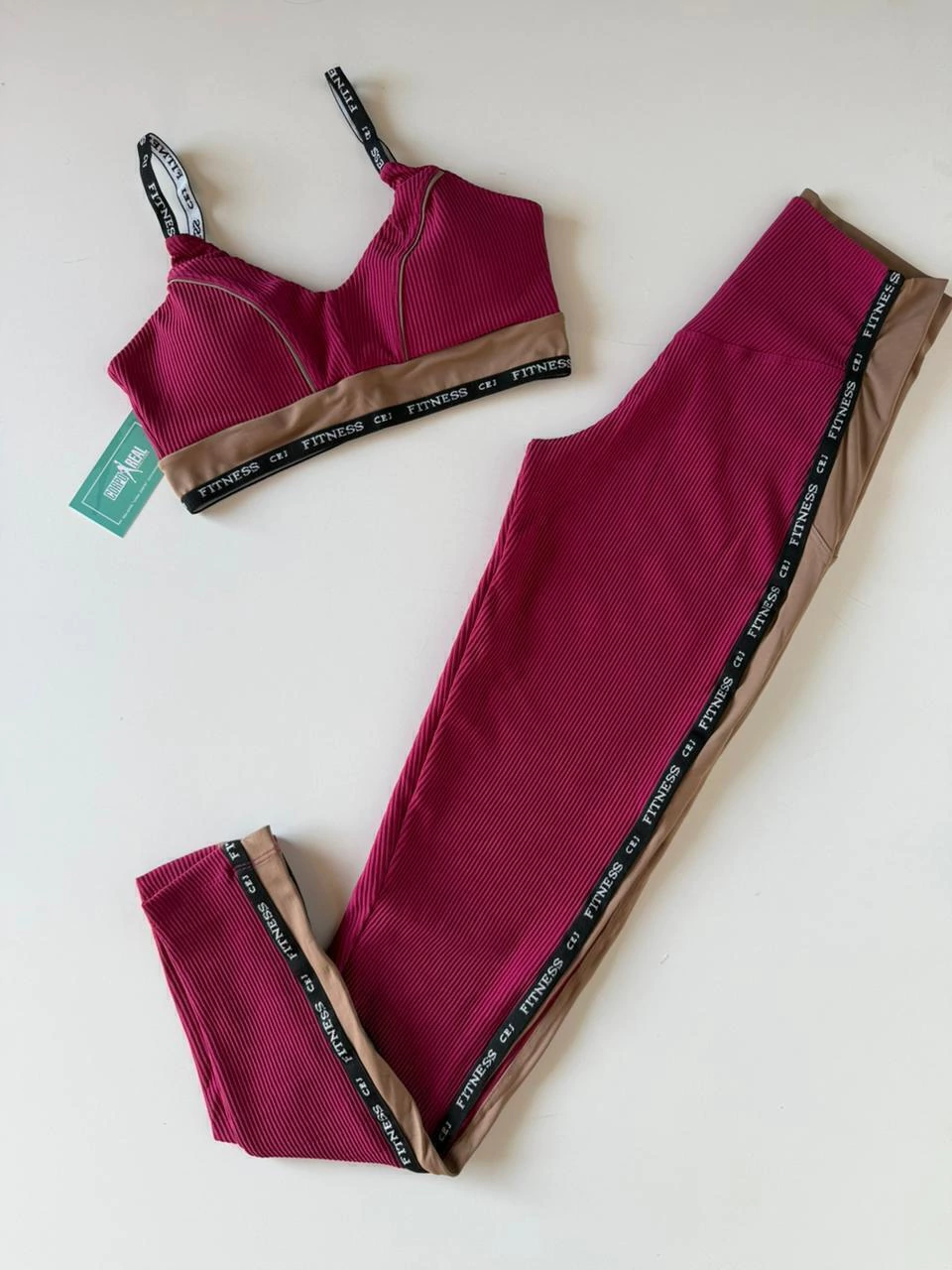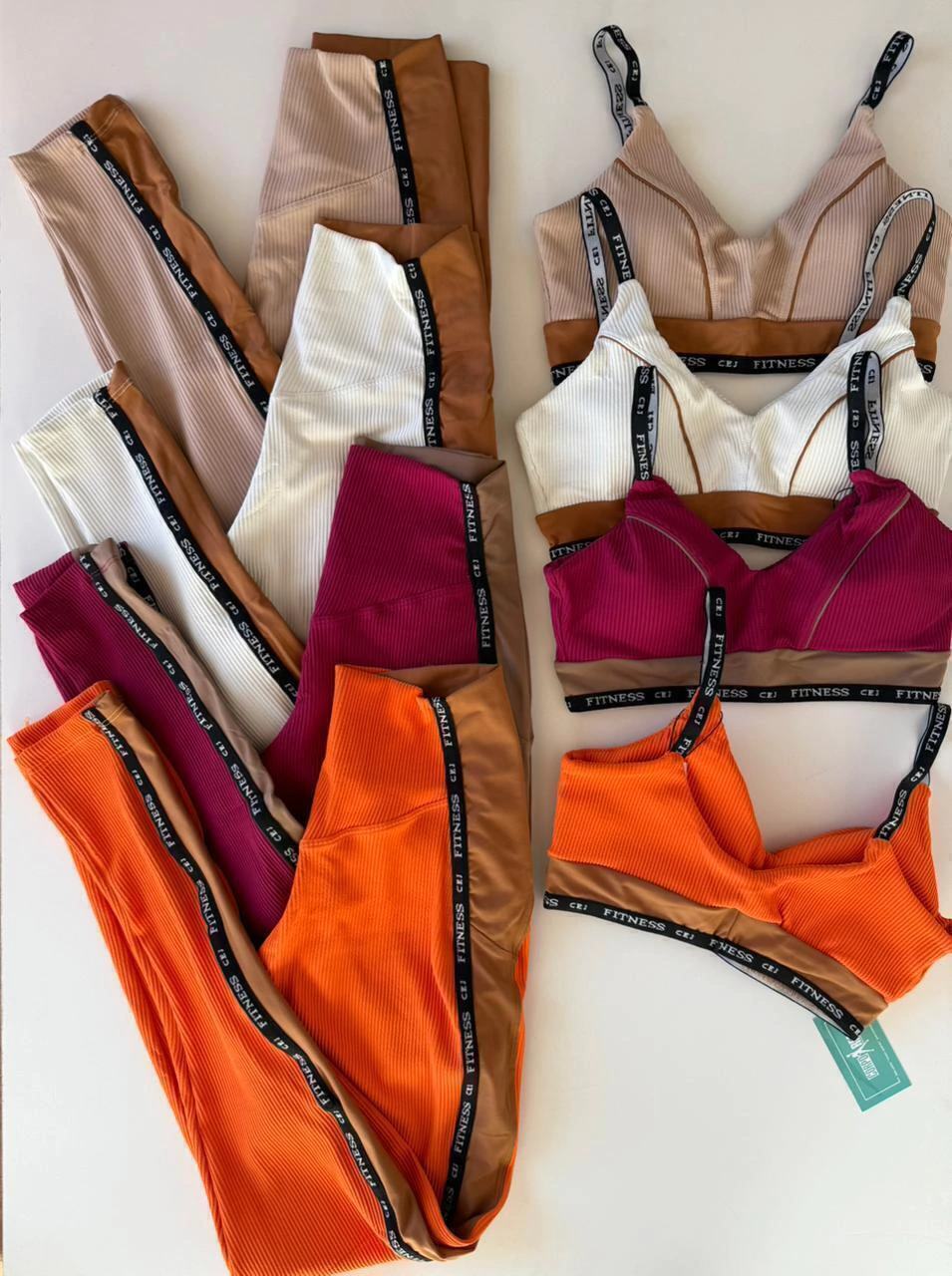 Conjunto em poliamida canelado premium. Possui alto relevo anticelulite. Acompanha cropped com alças personalizadas em elástico de compressao e bojo removível. Legging cós alto, zero transparência. Peças ricas em detalhes, que garantem um modelo super exclusivo.