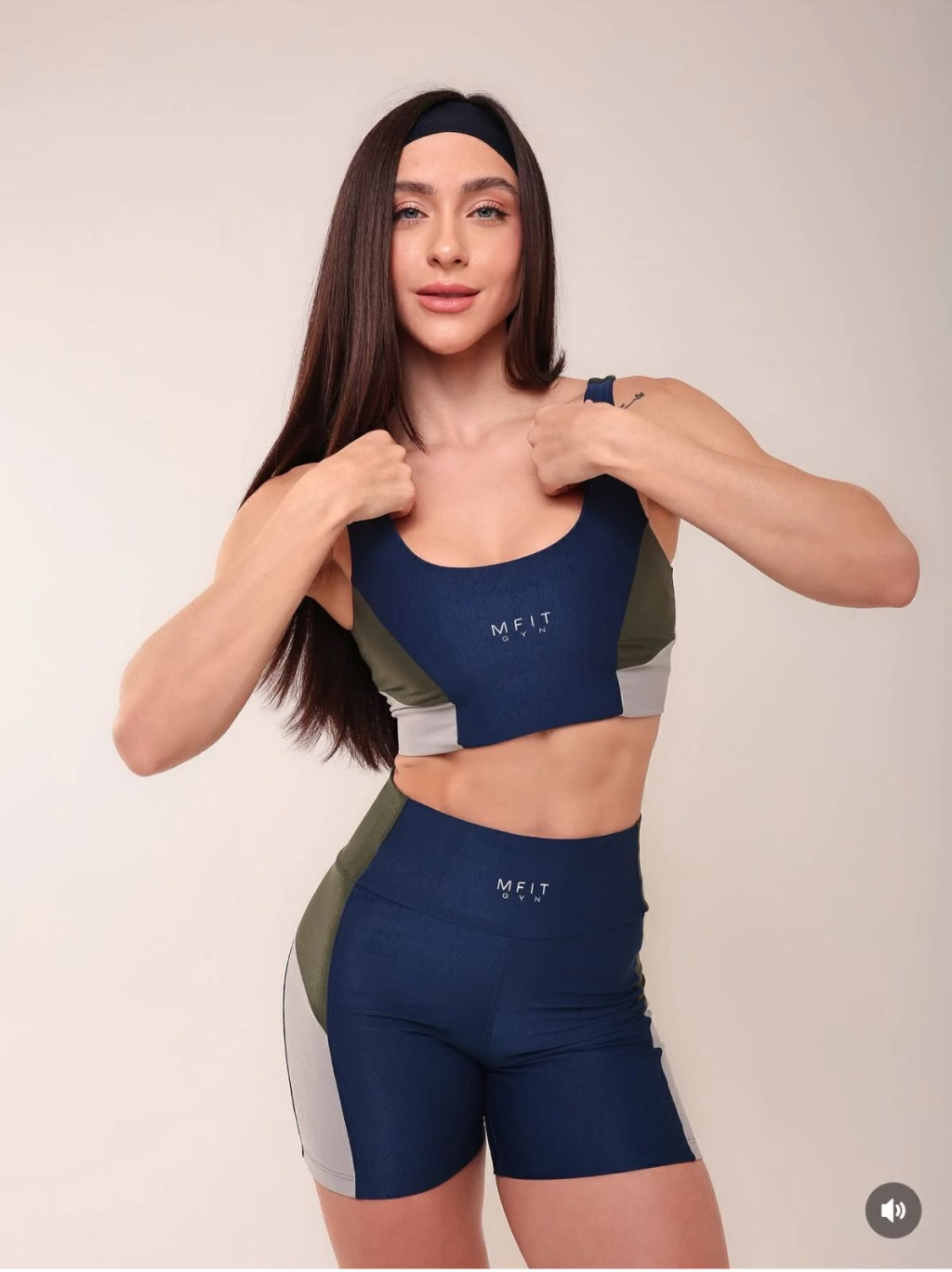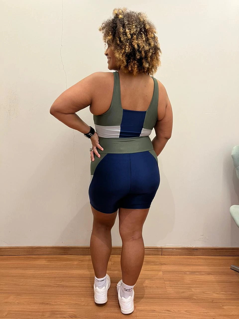 Conjunto de Short Fitness Rise: alta compressão, zero transparência e proteção UV50+ para treinos com conforto e segurança. Top sustentável, moderno e estiloso, garante firmeza, elegância e performance em cada movimento.