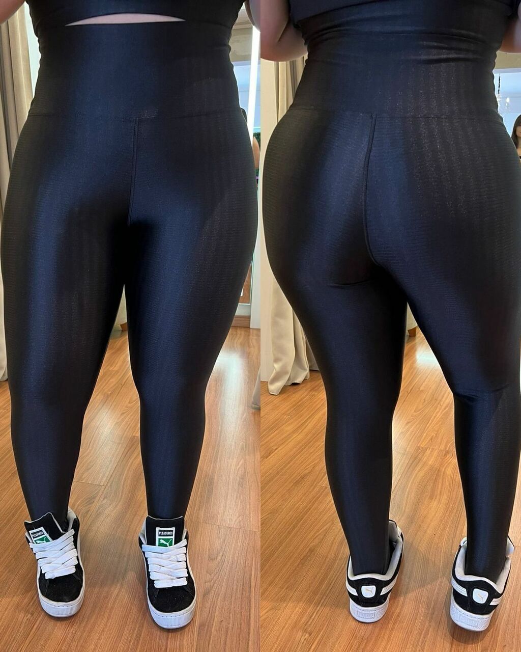 Legging clássica, ideal para o dia a dia. Possui tecido maleável, com leve brilho. Possui efeito 3D anticelulite, desenvolvido para disfarçar as imperfeições da pele. Cós máxi (acima do alto), possui 14cm e evita enrolar. Modelagem perfeita e zero transparência.