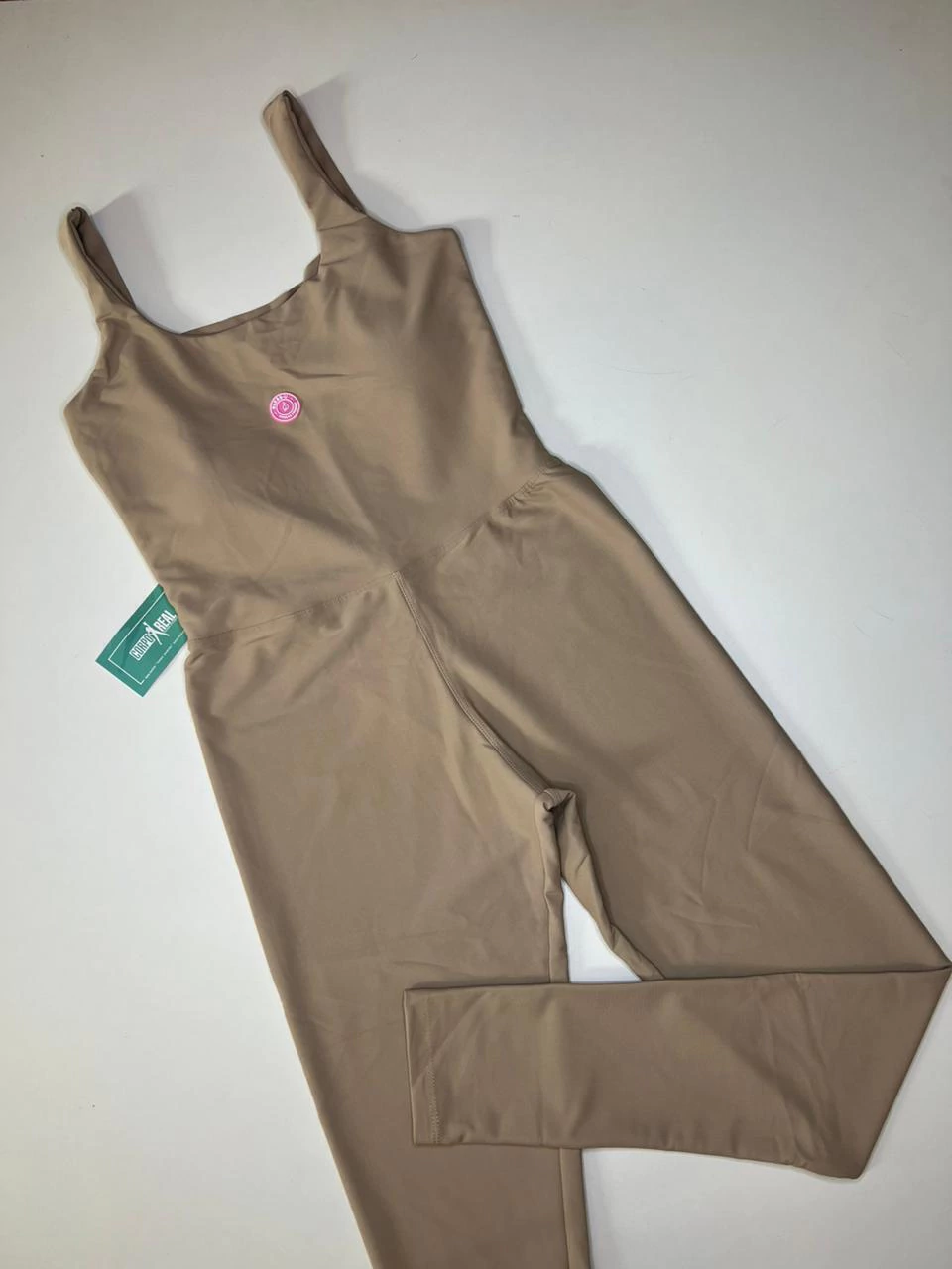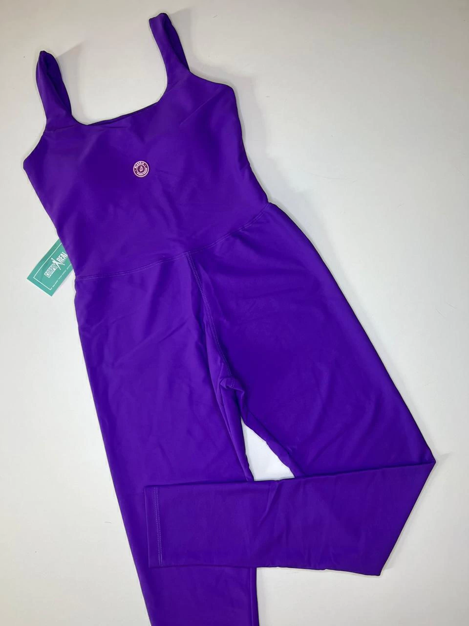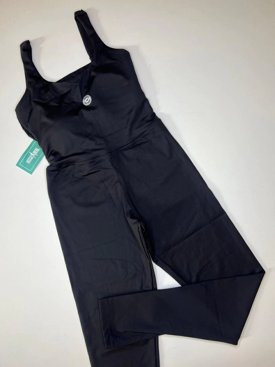 Macacão em poliamida liso. Modelo clássico, com poucos detalhes. Possui alças médias, alta sustentação no seio e detalhe nas costas.