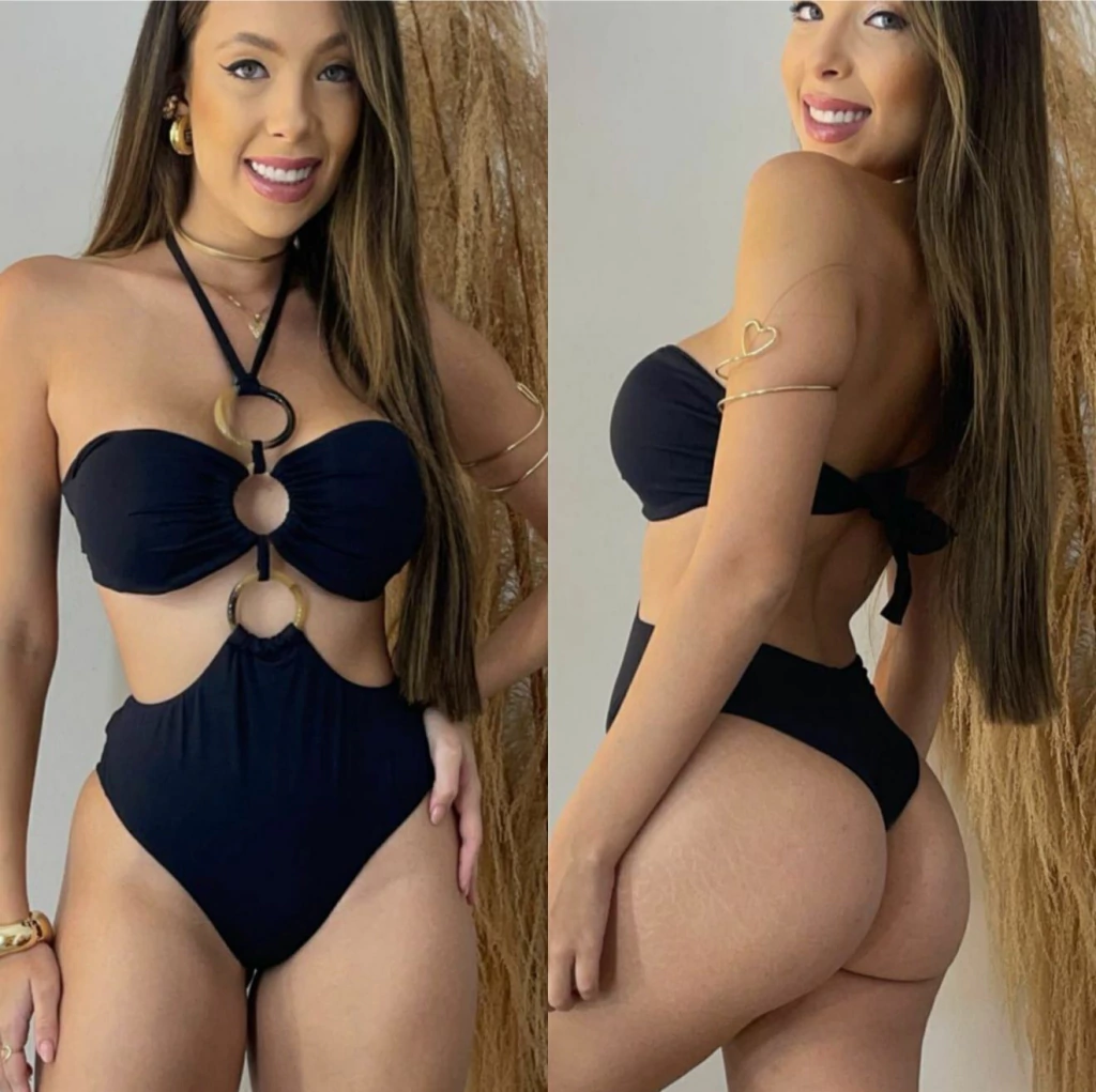 Maiô | Body em poliamida beach, ideal para banho de mar e piscina. Não desbota. Possui bojo removível, amarração atrás e no pescoço para melhor ajuste e calcinha semi fio, fio duplo, proporcionando maior conforto. Detalhes em argolas de acrílico frontais, que deixam a peça mais sofisticada e exclusiva.